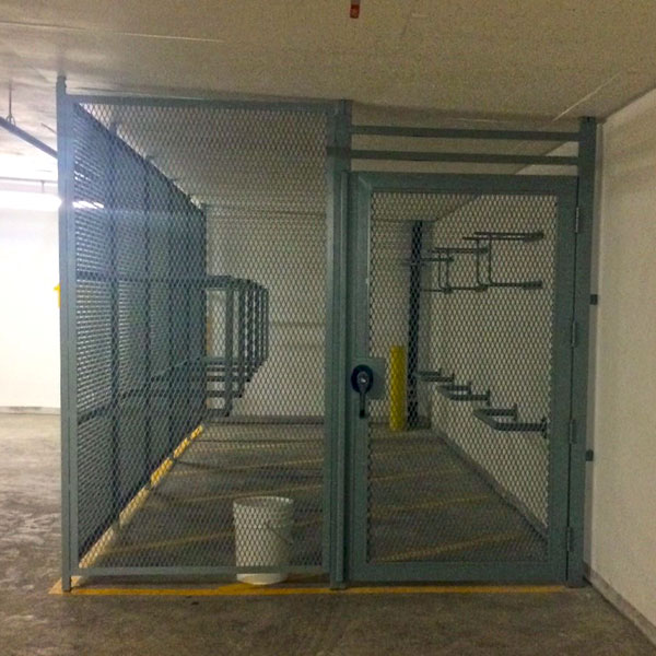 Bike rooms or bike lock-up cages are an ever important feature in residential and commercial buildings. We will design, build, and install a custom fitted bike cage to fit your space and help keep bikes safe and secure. Bike cages utilize the same various design and security features as our area security enclosures.