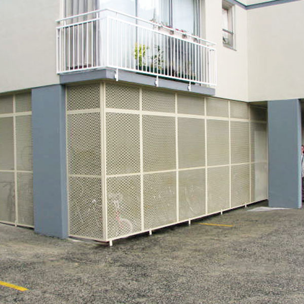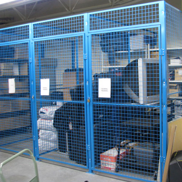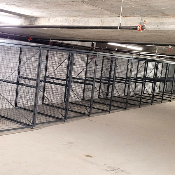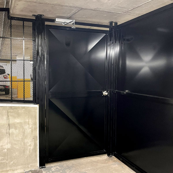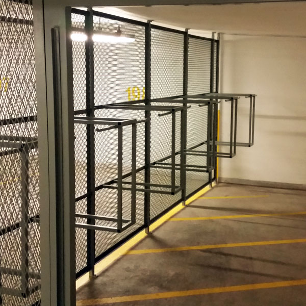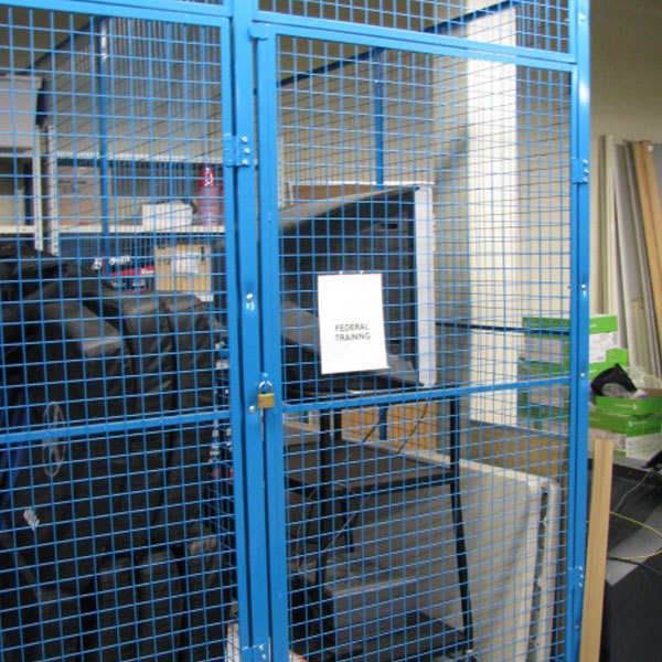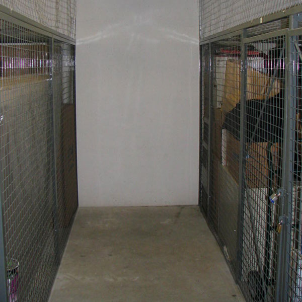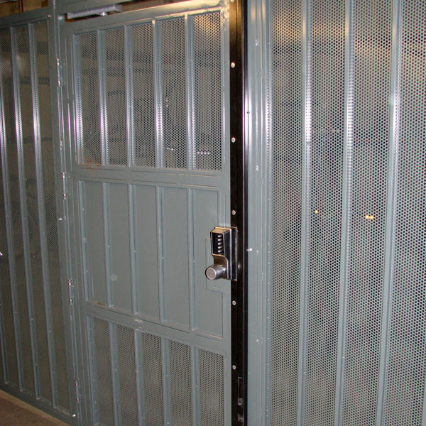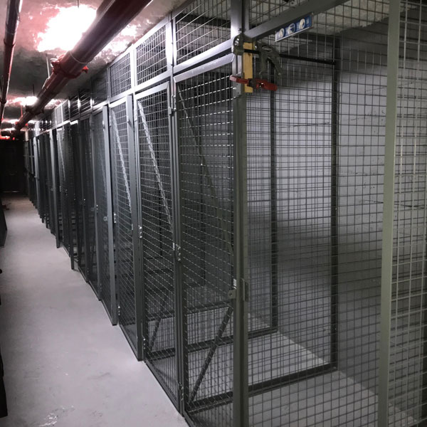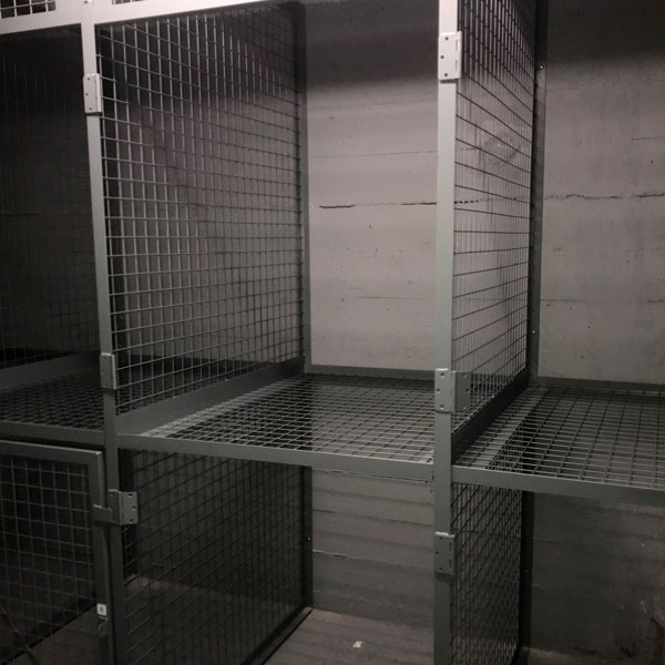 This installation features solid steel panel walls, making it much more difficult to cut through than bars or expanded steel mesh. It also brings another element of security which is obfuscation – by hiding what’s in the storage area, there is less chance of a break-in.
