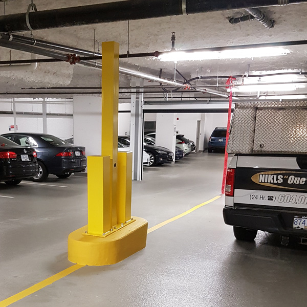 when in-ground installation is not a good option (usually in or over parkades), surface mounted bollards are a great option. They can be mounted on concrete walkways or slabs with concrete anchors.