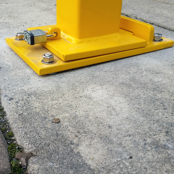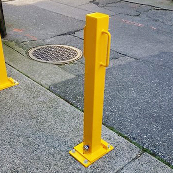 For a heavier duty removable bollard, we have a heavy wall steel bollard that is lockable to an in-ground base. This bollard and base are also designed to feature no tripping hazards left on the ground when the bollard is removed.