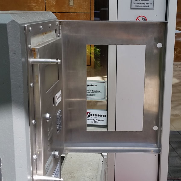 The primary issue is the locks and latches on these panels are not very strong and are easily pried open. We can secure your panel by adding locking bars or a shroud to prevent the panel from being pried open. These security enhancements also allow the panel to be unlocked and opened so technicians can work on the panel when needed.