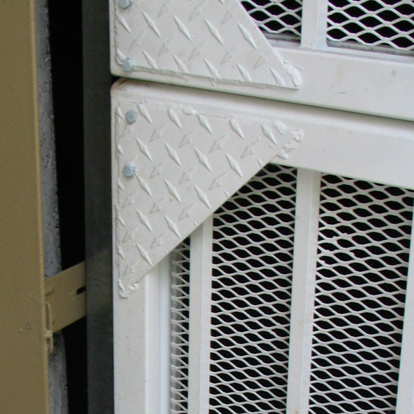 These guards are an excellent upgrade for doors in parkades, stairwells, service areas, and other areas of your property where security and visibility are important. And perforated steel is much stronger than expanded steel mesh in these circumstances. Guards are also installed with through-bolted carriage bolts.