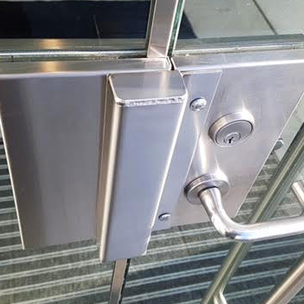 We make and install guards for a wide variety of door handles, including knobs and lever handles. They can be installed on standard doors, exit only doors, and custom fabricated gates.