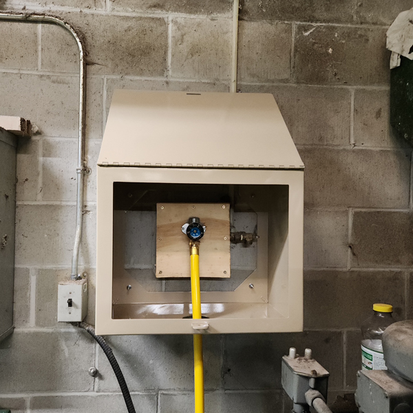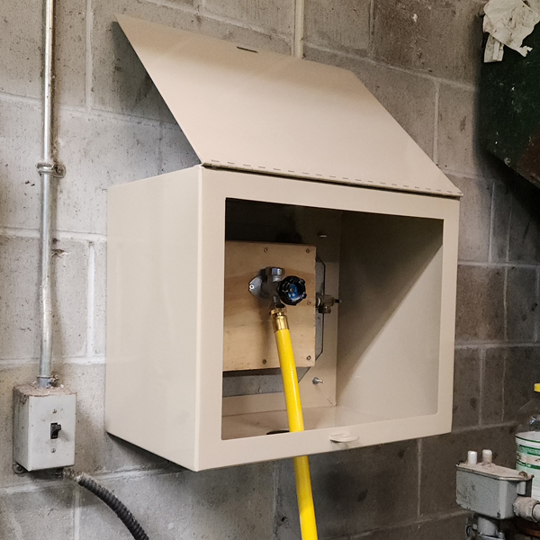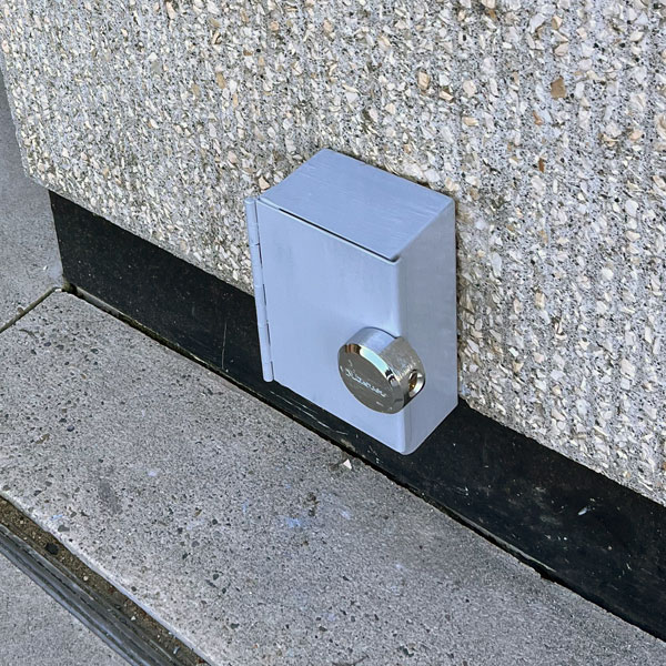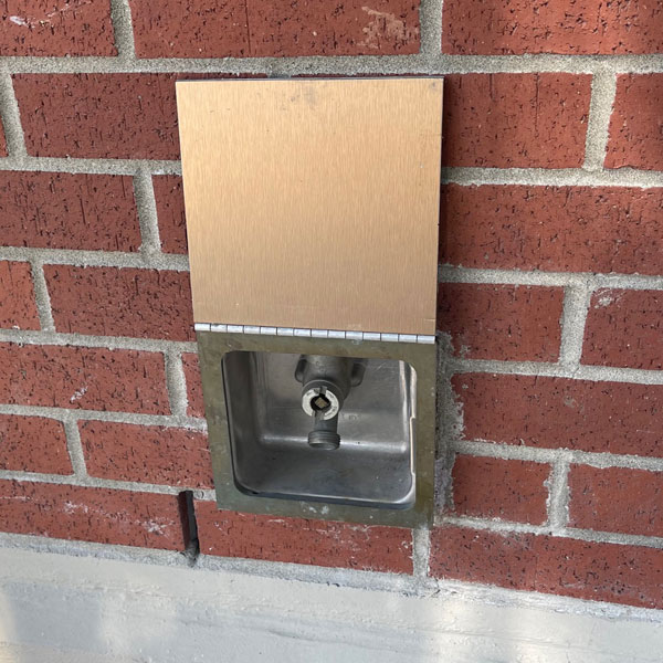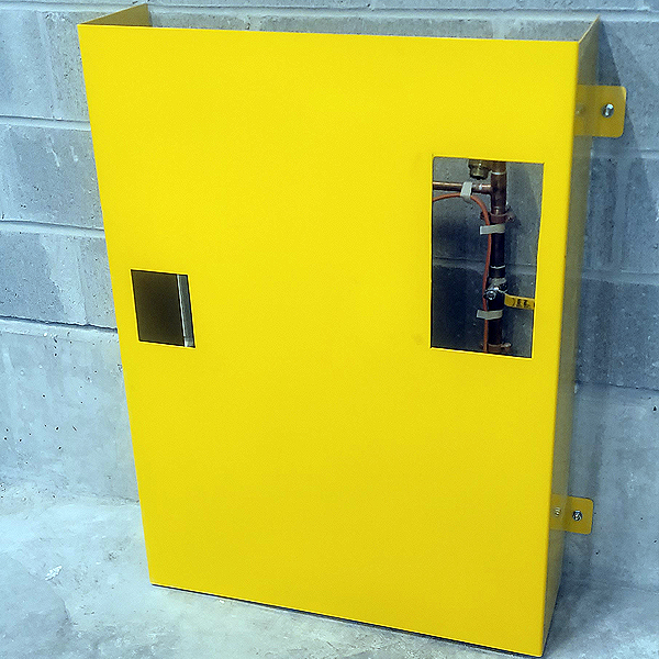 Prevent tampering or unauthorized use of exterior water taps and hose bibs. Heavy gauged steel with padlock clasp. Anchored to the wall around the hose bib, and door covers access to the anchors.
