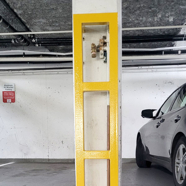 If hit by a vehicle, equipment installed in underground parkades can cause a shut down in building services such as water, drainage, or HVAC systems, as well as expensive damage.