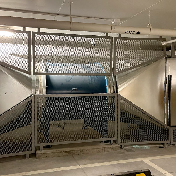 Low ceiling parkades or covered parking areas can be at risk of having piping or other ceiling mounted equipment damaged. Even with maximum clearance bars, vehicles that are too high will sometimes try to “get through”.