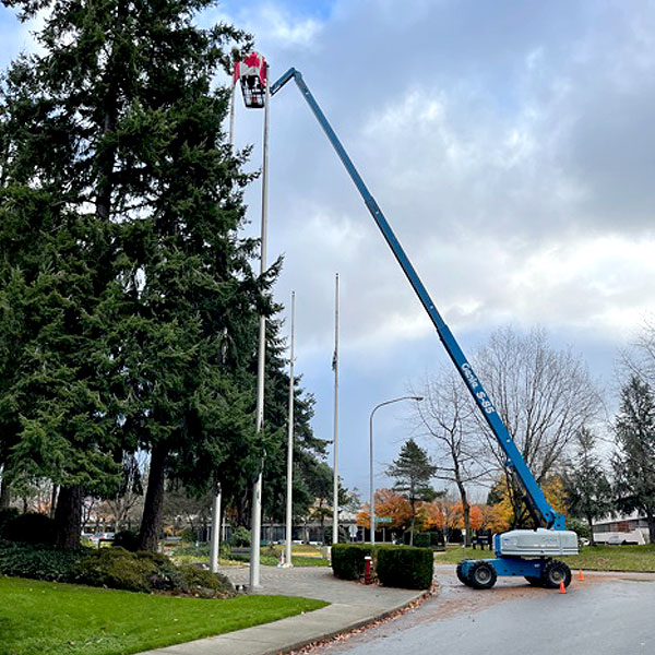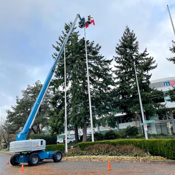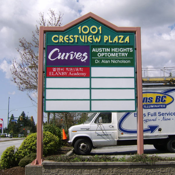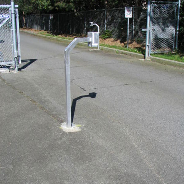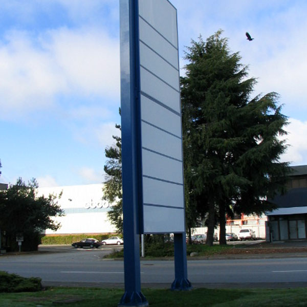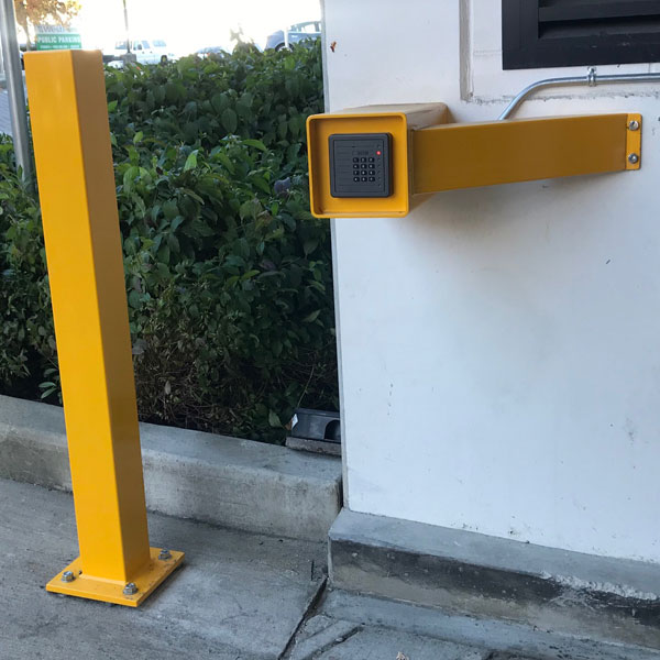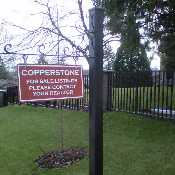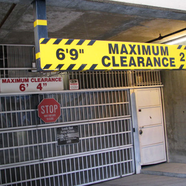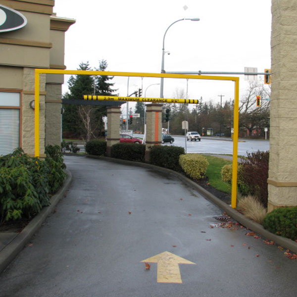 Parking lot entrance signage framework. Overhead frame built for sign installation to welcome patrons to the property.