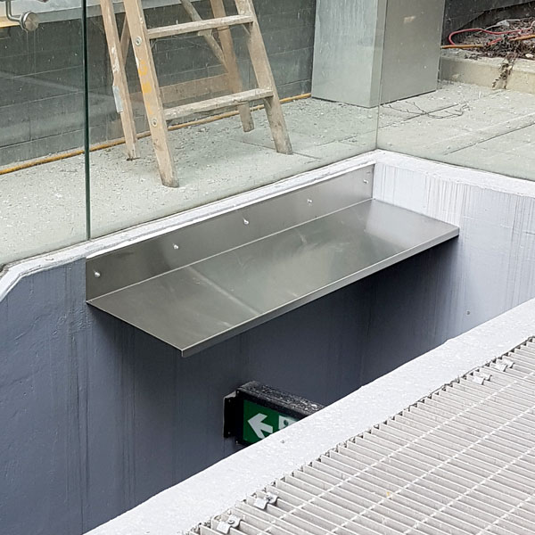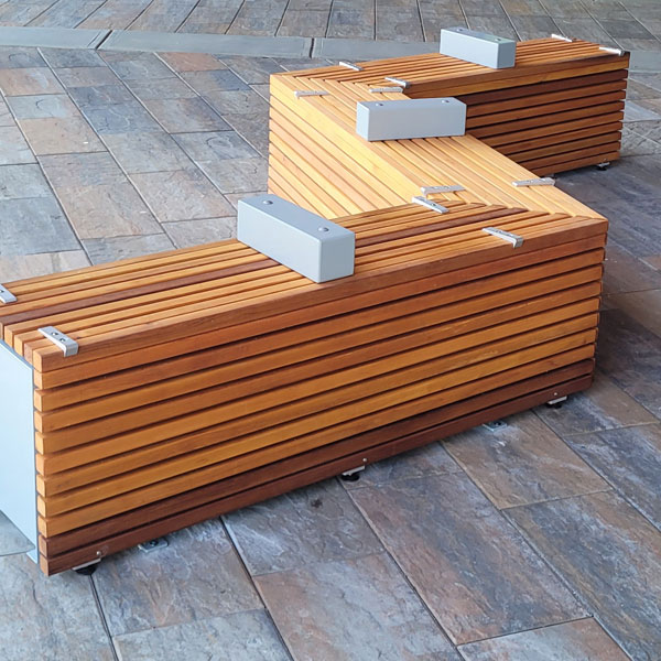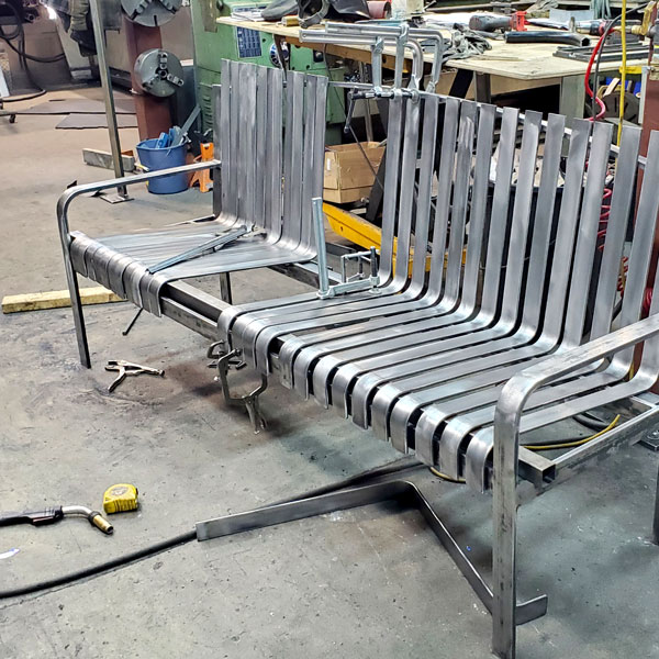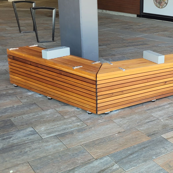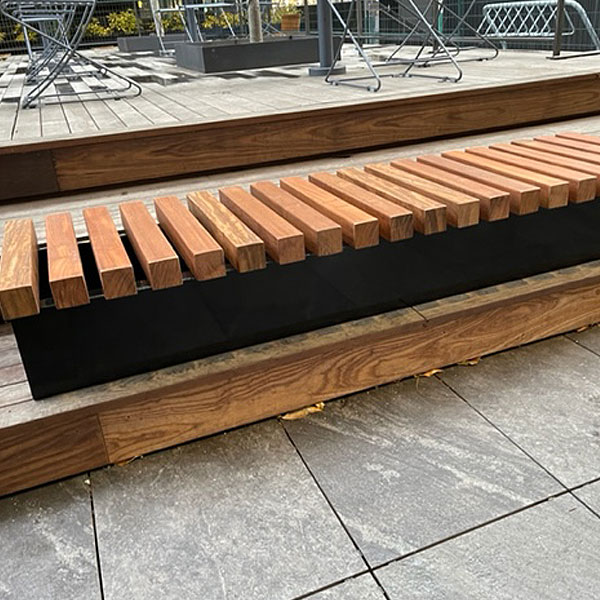 Dividers built to match existing bench design and installed to prevent loitering / sleeping on the benches.