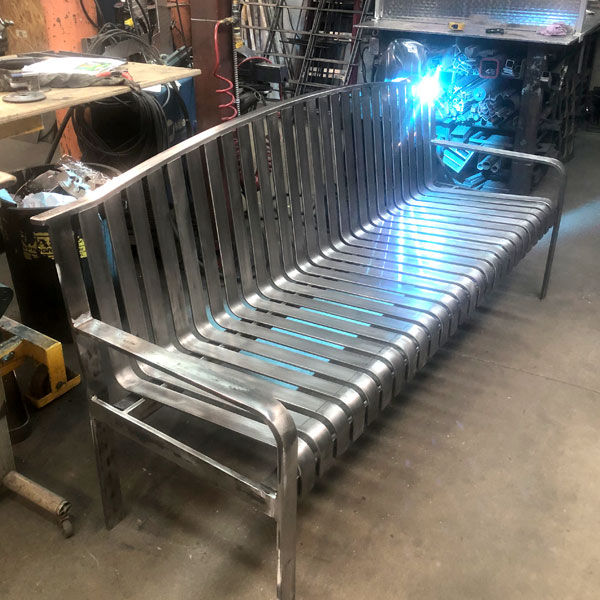 This stainless steel picnic table was fabricated to compliment the existing stainless steel benches.